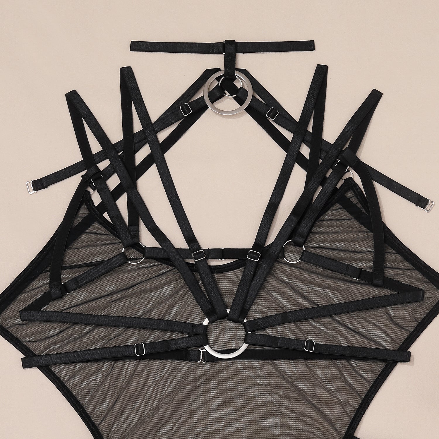 Σετ διάφανο μαύρο κορμάκι με αποσπώμενα λουράκια στο στήθος αποσπώμενες ζαρτιέρες και choker