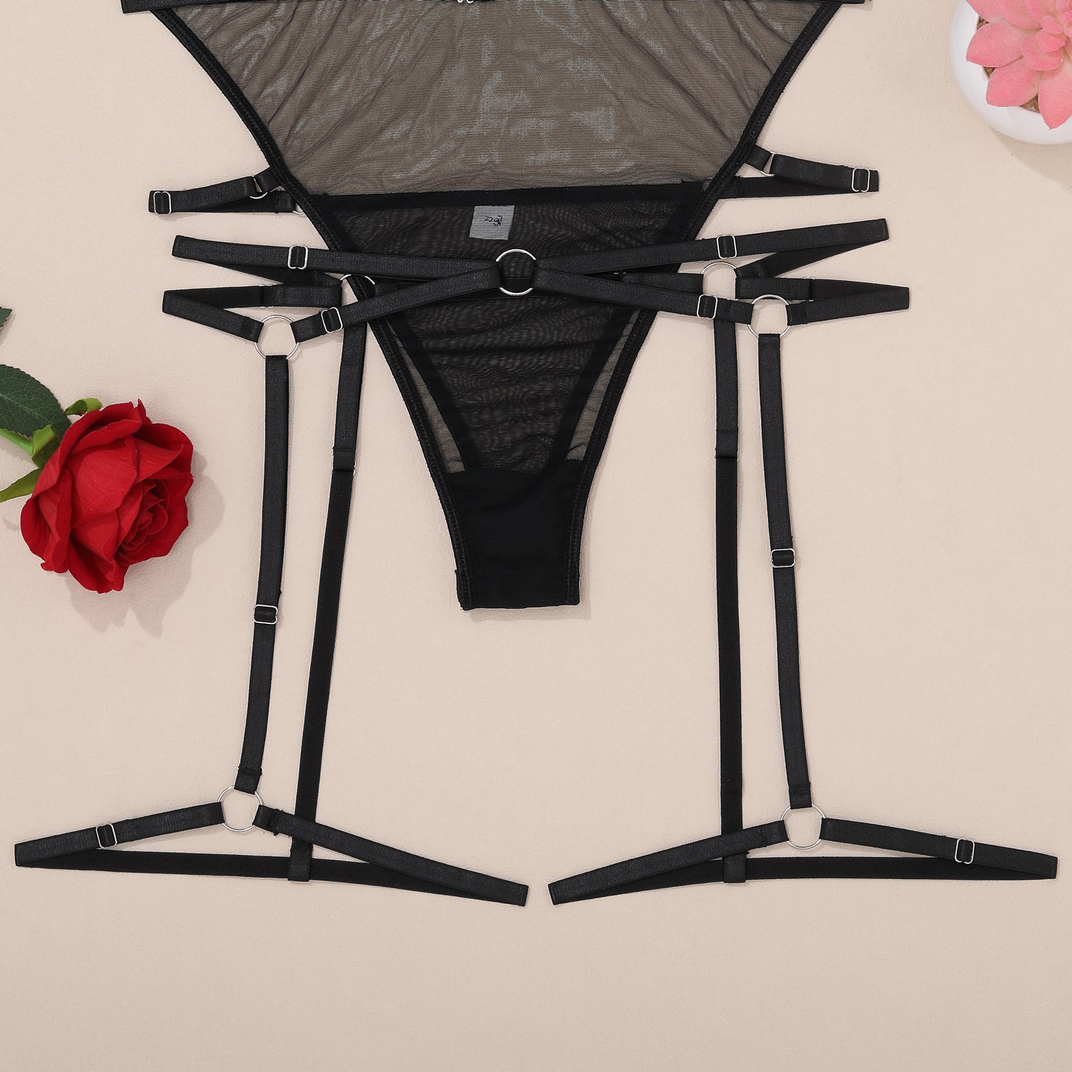 Σετ διάφανο μαύρο κορμάκι με αποσπώμενα λουράκια στο στήθος αποσπώμενες ζαρτιέρες και choker