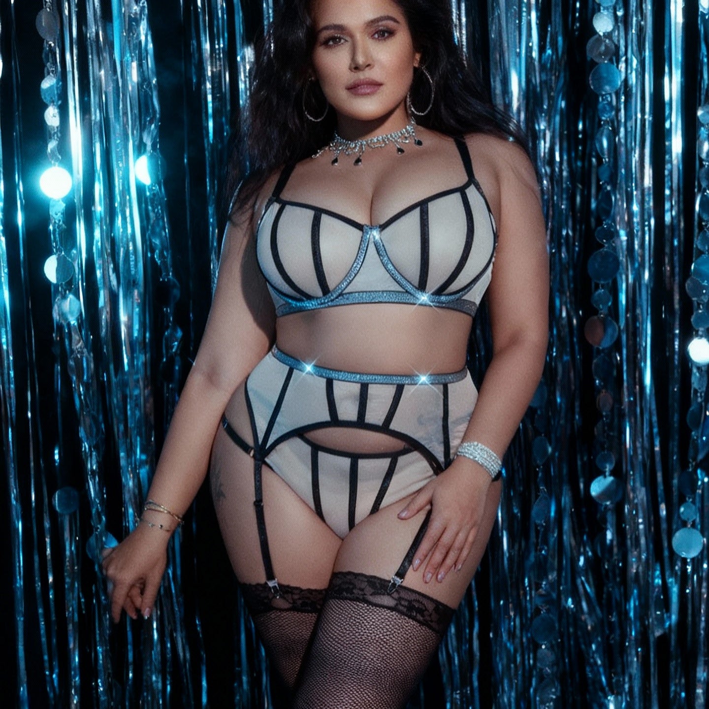 Το bra διαθέτει σταθερή υποστήριξη και εντυπωσιακές λεπτομέρειες στη λωρίδα κάτω από το στήθος, προσφέροντας θηλυκότητα και κομψότητα σε κάθε κίνηση. Το ψηλόμεσο bottom τονίζει τη μέση και εξασφαλίζει άψογη εφαρμογή, ενώ οι ρυθμιζόμενες ζαρτιέρες —που περιλαμβάνονται στο σετ— ολοκληρώνουν το look με μια glamorous, απόλυτα αισθησιακή πινελιά.